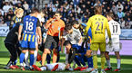 [OSEN=울산, 이석우 기자] 3일 울산 문수축구경기장에서 하나원큐 K리그1 2023 울산 현대와 전북 현대의 경기가 열렸다. 전북 현대 홍정호가 울산 현대 조현우 골키퍼와 충돌해 쓰러지자 선수들이 상태를 살피고 있다. 2023.12.03 / foto