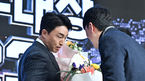 [OSEN=박준형 기자] 4일 오전 서울 강남 엘리에나 호텔에서 조아제약 프로야구대상 2023 시상식이 진행됐다. 수비상을 수상한 양의지가 이승엽 감독에게 축하 꽃다발을 받고 있다 / soul1014@osen.co.kr