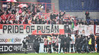 [OSEN=부산, 이석우 기자] 6일 부산아시아드주경기장에서 K리그 승강 플레이오프(PO) 1차전 부산 아이파크와 수원FC의 경기가 열렸다. 부산 아이파크 선수들이 페널티킥 2개로 역전승을 올린 후 팬들과 기쁨을 나누고 있다. 2023.12.06