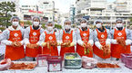 [OSEN=부산, 이석우 기자] 8일 부산 사직구장 정문 광장에서 롯데 사랑나눔 프로젝트 1만포기 김장담그기가 열렸다. 롯데 자이언츠 전미르, 김원중, 임성복 롯데 지주 전무, 이강훈 대표, 윤동희, 김민석, 나균안이 김장 김치를 들