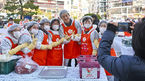 [OSEN=부산, 이석우 기자] 8일 부산 사직구장 정문 광장에서 롯데 사랑나눔 프로젝트 1만포기 김장담그기가 열렸다. 롯데 자이언츠 김원중이 김장 담그기에 참석한 어미니들과 기념촬영을 하고 있다. 2023.12.08 / foto0307@osen.co.kr
