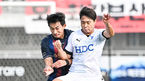 [OSEN=수원, 박준형 기자] 9일 오후 수원종합운동장에서 하나원큐 K리그 승강 플레이오프 2023 2차전 수원FC와 부산 아이파크의 경기가 진행됐다.전반 부산 아이파크 민상기와 수원FC 김현이 공을 다투고 있다. 2023.12.09 / soul1014@osen.c