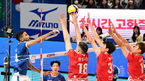 [OSEN=지형준 기자] 20일 오후 서울 장충체육관에서 도드람 2023-2024 V리그 남자부 우리카드와 현대캐피탈의 경기가 열렸다.2세트 현대캐피탈 아흐메드가 우리카드 블로킹을 피해 연타를 날리고 있다. 2023.12.20 / jpnews.osen.co.kr