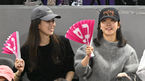 [OSEN=인천, 김성락 기자] 20일 오후 인천 삼산월드체육관에서 ‘도드람 2023-2024 V리그’ 여자부 흥국생명과 현대건설의 경기가 열렸다.배우 정려원, 한지민이 열띤 응원을 펼치고 있다. 2023.12.20 /ksl0919@osen.co.kr