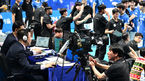 [OSEN=지형준 기자] 20일 오후 서울 장충체육관에서 도드람 2023-2024 V리그 남자부 우리카드와 현대캐피탈의 경기가 열렸다.4세트 우리카드 선수들이 마테이의 서브 인-아웃 비디오 판독 결과에 불만을 나타내고 있다. 2023.12.20 / jpnew