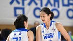 [OSEN=용인, 김성락 기자] 22일 오후 경기도 용인시 용인시실내체육관에서 '우리은행 우리WON 2023~2024 여자프로농구' 삼성생명 블루밍스와 우리은행 우리WON의 경기가 진행됐다.이날 우리은행은 삼성생명을 상대로 65-50으로 승리했