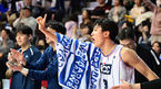 [OSEN=안양, 지형준 기자] 22일 오후 안양실내체육관에서 열린 2023-2024 정관장 프로농구 정규리그 안양 정관장과 부산 KCC의 경기에서 KCC과 104-75 승리를 거뒀다.4쿼터 KCC 최준용이 동료선수의 득점이 터지자 허웅의 머리를 만지며