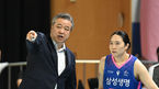 [OSEN=용인, 김성락 기자] 22일 오후 경기도 용인시 용인시실내체육관에서 '우리은행 우리WON 2023~2024 여자프로농구' 삼성생명 블루밍스와 하나원큐의 경기가 진행됐다.1쿼터 삼성생명 임근배 감독이 김단비와 이야기를 나누고 있