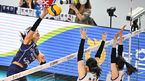 [OSEN=김천, 이석우 기자] 5일 김천실내체육관에서 도드람 2023-2024 V리그 한국도로공사와 현대건설의 경기가 열렸다. 한국도로공사 부키리치가 현대건설 양효진, 모마의 블로킹을 뚫고 스파이크를 날리고 있다. 2024.01.05 / foto0307@os