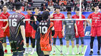 [OSEN=수원, 박준형 기자]OK금융그룹이 6일 수원실내체육관에서 열린 2023~2024시즌 도드람 V리그 남자부 한국전력과의 4라운드 맞대결에서 세트스코어 3대1(22-25, 25-22, 25-18, 25-19)로 승리했다.경기종료후 한국전력 선수들이 아쉬워하
