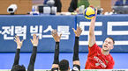 [OSEN=수원, 박준형 기자] 6일 오후 경기도 수원시 수원종합운동장 내 수원실내체육관에서 '도드람 2023-2024 V리그' 남자부 한국전력과 OK금융그룹의 경기가 진행됐다.1세트 OK금융그룹 레오가 강타를 날리고 있다. 2024.01.06 / soul1014@o