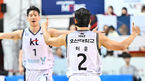 [OSEN=울산, 이석우 기자] 6일 울산 동천체육관에서 2023-2024 정관장 프로농구 울산 현대모비스와 수원 kt의 경기가 열렸다. 수원 kt 하윤기와 문정현이 3점슛을 성공시킨 허훈과 하이파이브를 하고 있다. 2024.01.06 / foto0307@osen.co.kr