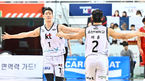 [OSEN=울산, 이석우 기자] 6일 울산 동천체육관에서 2023-2024 정관장 프로농구 울산 현대모비스와 수원 kt의 경기가 열렸다. 수원 kt 허훈이 골을 성공시킨 한희원과 하이파이브를 하고 있다. 2024.01.06 / foto0307@osen.co.kr
