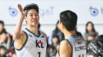 [OSEN=울산, 이석우 기자] 6일 울산 동천체육관에서 2023-2024 정관장 프로농구 울산 현대모비스와 수원 kt의 경기가 열렸다. 수원 kt 한희원이 3점슛을 성공시킨 허훈과 하이파이브를 하고 있다. 2024.01.06 / foto0307@osen.co.kr