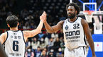 [OSEN=부산, 이석우 기자] 7일 부산 사직체육관에서 2023-2024 정관장 프로농구 부산 KCC와 고양 소노의 경기가 열렸다.고양 소노 치나누 오누아쿠가 골을 성공시킨 이정현과 하이파이브를 하고 있다. 2024.01.07 / foto0307@osen.co.kr