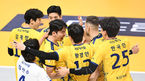 [OSEN=의정부, 김성락 기자] 9일 오후 경기도 의정부체육관에서 ‘도드람 2023-2024 V-리그’ KB손해보험과 대한항공의 경기가 열렸다.1세트 대한항공 선수들이 득점에 성공한 뒤 기뻐하고 있다. 2024.01.09 /ksl0919@osen.co.kr