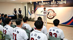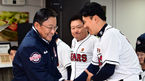 [OSEN=잠실, 조은정 기자]두산 베어스 시무식 겸 창단 기념일 행사가 15일 오전 서울 잠실야구장에서 열렸다.두산 베어스 주장 양석환이 코치진과 인사를 나누고 있다. 2024.01.15/cej@osen.co.kr