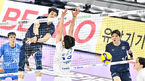 [OSEN=인천계양체, 박준형 기자] 16일 오후 인천 계양체육관에서 ‘도드람 2023-2024 V-리그’ 대한항공과 삼성화재의 경기가 진행됐다.1세트 대한항공 무라드가 득점 성공한 후 동료들과 기뻐하고 있다. 2024.01.16 / soul1014@osen.co.kr