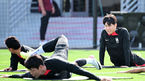 [OSEN=도하(카타르), 지형준 기자] 대한민국 축구대표팀이 17일(현지시간) 카타르 도하 알 에글라 트레이닝 센터에서 훈련을 가졌다.이강인이 몸을 풀며 즐거워하고 있다. 2024.01.17 / jpnews.osen.co.kr
