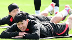 [OSEN=도하(카타르), 지형준 기자] 대한민국 축구대표팀이 17일(현지시간) 카타르 도하 알 에글라 트레이닝 센터에서 훈련을 가졌다.손흥민이 몸을 풀며 즐거워하고 있다. 2024.01.17 / jpnews.osen.co.kr