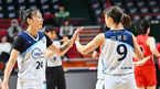 [OSEN=부산, 이석우 기자] 18일 부산 사직실내체육관에서 우리은행 우리WON 2023-2024 여자프로농구 부산 BNK 썸과 인천 신한은행의 경기가 열렸다. 인천 신한은행 김소니아가 1쿼터부터 큰 점수차로 리드하며 이경은과 하이파이브를