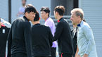 [OSEN=도하(카타르), 지형준 기자] 대한민국 축구대표팀이 18일(현지시간) 카타르 도하 알 에글라 트레이닝 센터에서 훈련을 가졌다.클린스만 감독이 김진수와 훈련에 앞서 이야기 나누고 있다. 2024.01.18 / jpnews.osen.co.kr