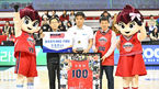 [OSEN=울산, 이석우 기자] 20일 울산 동천체육관에서 2023-2024 정관장 프로농구 울산 현대모비스와 대구 한국가스공사의 경기가 열렸다. 울산 현대모비스 조동현 감독이 100승 기념 시상식을 갖고 있다. 2024.01.20 / foto0307@osen.co.kr