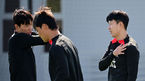 [OSEN=도하(카타르), 지형준 기자] 대한민국 축구대표팀이 21일(현지시간) 카타르 도하 알 에글라 트레이닝 센터에서 훈련을 가졌다.설영우, 이강인, 정우영이 훈련을 준비하며 이야기를 나누고 있다. 2024.01.21 / jpnews.osen.co.kr