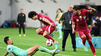 [OSEN=도하(카타르), 지형준 기자] 22일(현지시간) 카타르 알 라이얀 칼리파 인터내셔널 스타디움에서 2023 아시아축구연맹(AFC) 카타르 아시안컵 A조 최종전 카타르와 중국의 경기가 열렸다. 전반 카타르 알라에딘이 중국 장린펑의