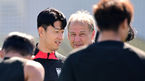 [OSEN=도하(카타르), 지형준 기자] 대한민국 축구대표팀이 24일(현지시간) 카타르 도하 알 에글라 트레이닝 센터에서 훈련을 가졌다.훈련에 앞서 클린스만 감독과 손흥민이 이야기를 나누고 있다. 2024.01.24 / jpnews.osen.co.kr