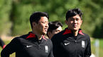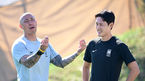 [OSEN=도하(카타르), 지형준 기자] 대한민국 축구대표팀이 24일(현지시간) 카타르 도하 알 에글라 트레이닝 센터에서 훈련을 가졌다.훈련에 앞서 차두리 코치와 박용우가 이야기를 나누고 있다. 2024.01.24 / jpnews.osen.co.kr