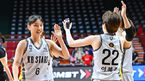 [OSEN=부산, 이석우 기자] 26일 부산 사직실내체육관에서 우리은행 우리WON 2023-2024 여자프로농구 부산 BNK 썸과 청주 KB스타즈의 경기가 열렸다. 청주 KB스타즈 강이슬이 성수연과 하이파이브를 하고 있다. 2024.01.26 / foto0307@osen.co.kr