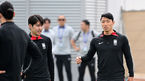 [OSEN=도하(카타르), 지형준 기자] 대한민국 축구대표팀이 27일(현지시간) 카타르 도하 알 에글라 트레이닝 센터에서 훈련을 가졌다.손흥민이 훈련을 준비하며 코칭스태프와 인사를 나누고 있다. 2024.01.27 / jpnews.osen.co.kr