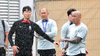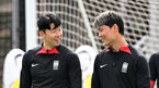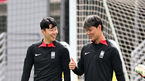 [OSEN=도하(카타르), 지형준 기자] 대한민국 축구대표팀이 27일(현지시간) 카타르 도하 알 에글라 트레이닝 센터에서 훈련을 가졌다.이기제가 훈련을 준비하며 코칭스태프와 인사를 나누고 있다. 2024.01.27 / jpnews.osen.co.kr