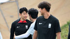 [OSEN=도하(카타르), 지형준 기자] 대한민국 축구대표팀이 27일(현지시간) 카타르 도하 알 에글라 트레이닝 센터에서 훈련을 가졌다.오현규가 손흥민이 훈련을 준비하며 이야기를 나누고 있다. 2024.01.27 / jpnews.osen.co.kr