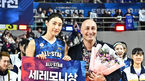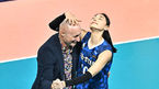 [OSEN=박준형 기자] 27일 오후 인천삼산월드체육관에서 프로배구 '2023-2024 도드람 V리그' 올스타전이 진행됐다.2세트 김연경이 아본단자감독과 댄스 세리모니를 보이고 있다. 2024.01.27 / soul1014@osen.co.kr