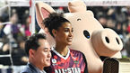 [OSEN=박준형 기자] 27일 오후 인천삼산월드체육관에서 프로배구 '2023-2024 도드람 V리그' 올스타전이 진행됐다.스파이크 서브 퀸으로 선정된 실바가 레오의 축하를 받고 있다. 2024.01.27 / soul1014@osen.co.kr