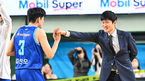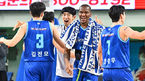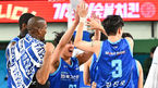 [OSEN=대구, 이석우 기자] 27일 대구체육관에서 2023-2024 정관장 프로농구 대구 한국가스공사와 원주 DB의 경기가 열렸다. 대구 한국가스공사 강혁 감독 대행과 선수들이 4쿼터 막판 김진모의 데뷔 첫 무대 3점슛 성공에 환호하고 있