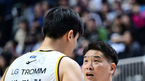 [OSEN=수원, 최규한 기자] 28일 오후 경기도 수원 KT 아레나에서 ‘2023-2024 정관장 프로농구’ 수원 KT와 창원 LG의 경기가 열렸다.1쿼터, LG 조상현 감독이 박정현과 대화를 나누고 있다. 2024.01.28 / dreamer@osen.co.kr