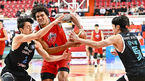 [OSEN=울산, 이석우 기자] 28일 울산 동천체육관에서 2023-2024 정관장 프로농구 울산 현대모비스와 서울 삼성의 경기가 열렸다. 울산 현대모비스 최진수가 서울 삼성 이스마엘 레인, 이동엽의 마크를 피해 골밑슛(4400득점)을 시도하