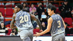 [OSEN=부산, 이석우 기자] 29일 부산 사직체육관에서 2023-2024 정관장 프로농구 부산 KCC와 안양 정관장의 경기가 열렸다. 부산 KCC 허웅이 3점슛을 성공시키고 라건아의 축하를 받고 있다. 2024.01.29 / foto0307@osen.co.kr