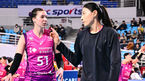 [OSEN=김천, 이석우 기자] 30일 김천실내체육관에서 도드람 2023-2024 V리그 한국도로공사와 흥국생명의 경기가 열렸다. 흥국생명 윌로우 존슨이 데뷔전을 앞두고 몸을 풀며 김연경과 얘기하고 있다. 2024.01.30 / foto0307@osen.co.kr