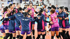 [OSEN=김천, 이석우 기자] 30일 김천실내체육관에서 도드람 2023-2024 V리그 한국도로공사와 흥국생명의 경기가 열렸다. 흥국생명 윌로우가 데뷔전에서 세트 스코어 3-0으로 승리한 후 동료들과 기쁨을 나누고 있다. 2024.01.30 / foto0307@o