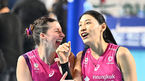 [OSEN=김천, 이석우 기자] 30일 김천실내체육관에서 도드람 2023-2024 V리그 한국도로공사와 흥국생명의 경기가 열렸다. 흥국생명 윌로우와 김연경이 레이나의 득점에 환호하고 있다. 2024.01.30 / foto0307@osen.co.kr