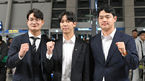 [OSEN=인천공항, 김성락 기자] 30일 오전 프로야구팀 한화 이글스가 2024 전지훈련을 위해 호주로 출국했다. 한화 김서현, 황준서, 문동주가 기념촬영을 하고 있다. 2024.01.30 / ksl0919@osen.co.kr