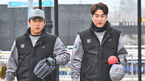 [OSEN=부산, 이석우 기자] 1일 부산 기장-현대차 드림 볼파크에서 KT 위즈가 스프링캠프를 열었다.KT 위즈 로하스가 천성호의 팔짱을 끼고 춥다며 너스레를 떨고 있다. 2024.02.01 / foto0307@osen.co.kr