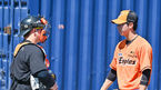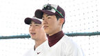 [OSEN=멜버른(호주), 박준형 기자] 한화 이글스가 3일(이하 한국시각) 호주 빅토리아주 멜버른에 위치한 멜버른볼파크에서 스프링캠프를 진행했다.한화 황준서가 불펜 투구 이후 최재훈 포수와 이야기를 나누고 있다. 2024.02.03 / sou