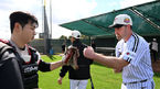 [OSEN=스코츠데일(미국 애리조나주), 이대선 기자] 3일(한국시간) 미국 애리조나주 스코츠데일에 위치한 인디언 스쿨 파크 베이스볼 필드에서 LG 트윈스의 스프링캠프가 진행됐다.불펜 피칭을 마친 LG 엔스가 포수 김성우와 하이파