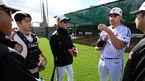 [OSEN=스코츠데일(미국 애리조나주), 이대선 기자] 3일(한국시간) 미국 애리조나주 스코츠데일에 위치한 인디언 스쿨 파크 베이스볼 필드에서 LG 트윈스의 스프링캠프가 진행됐다.불펜 피칭을 마친 LG 엔스가 코치진과 이야기를 나
