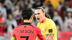 [OSEN=알 와크라(카타르), 지형준 기자] 3일(한국시간) 카타르 알 와크라에 위치한 알 자누브 스타디움에서 2023 아시아축구연맹(AFC) 아시안컵 8강 대한민국과 호주의 경기가 열렸다.전반 한국 손흥민과 호주 어바인이 얘기를 하고